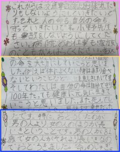 菊川小学校で行った「いのちの授業」の感想文を頂きました。