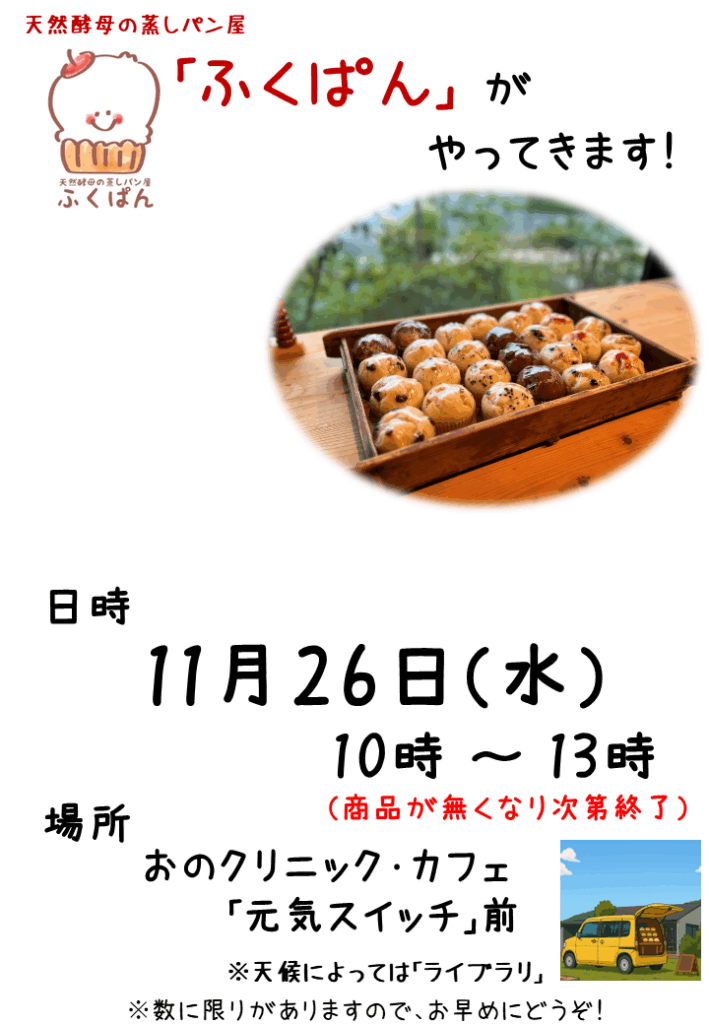 天然酵母の蒸しパン屋「ふくぱん」がやってきます!