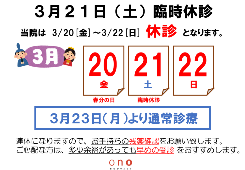 2026年3月21日(土)臨時休診