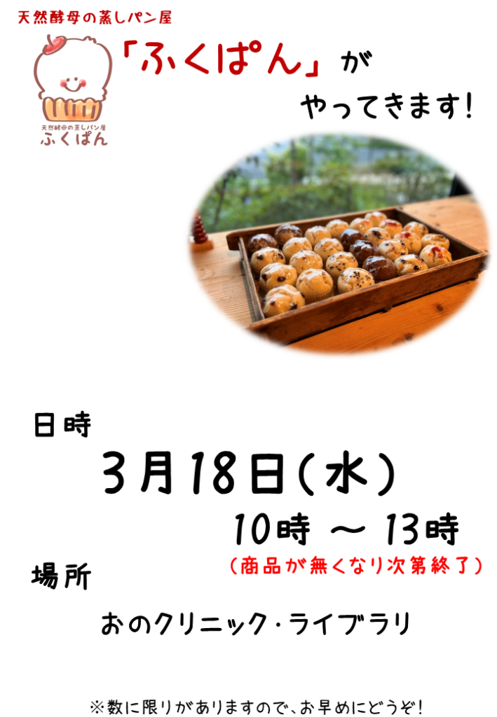 天然酵母の蒸しパン屋「ふくぱん」がやってきます!