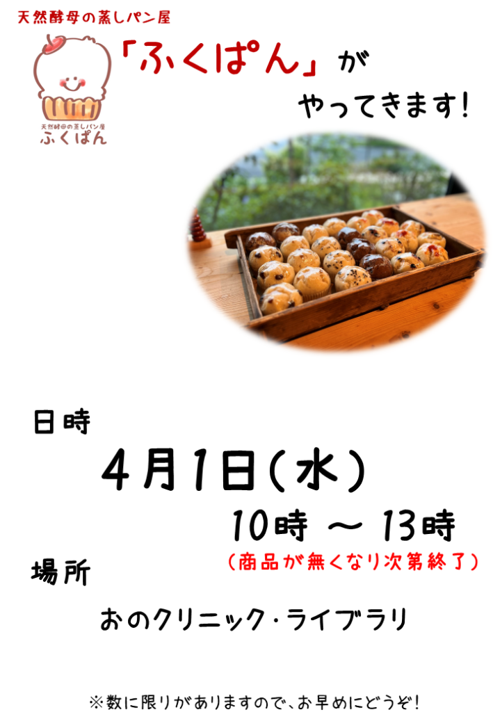 天然酵母の蒸しパン屋「ふくぱん」がやってきます!